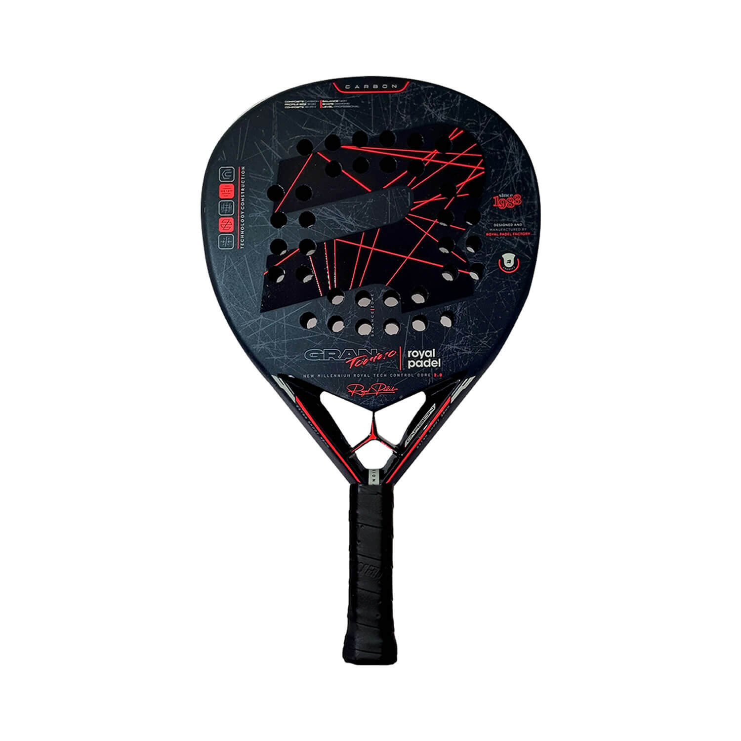 Descubre la pala Gran Torino Fiber, perfecta para elevar tu juego al siguiente nivel. Como todas nuestras palas, combina tecnología innovadora y materiales de alta calidad para ofrecerte un equilibrio excepcional entre potencia y control. Todas nuestras palas cuentan con diseño y peso optimizado lo que te permitirá ejecutar un juego con mayor facilidad. No esperes más, consigue esta pala y experimenta un juego inigualable en la pista.