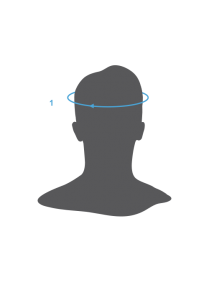 1. CABEZA: Rodea tu cabeza con una cinta métrica flexible a la altura de las sienes, justo por encima de las cejas. Usa esa medida para determinar tu talla de gorra.| Etiqueta | 1. CABEZA |