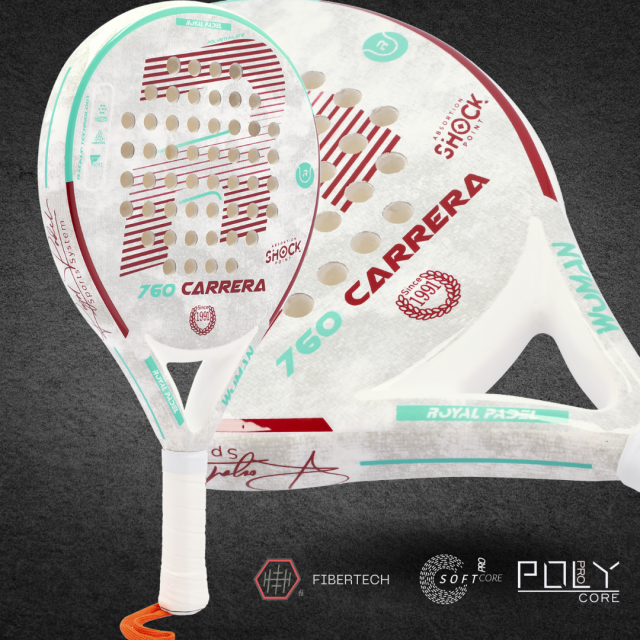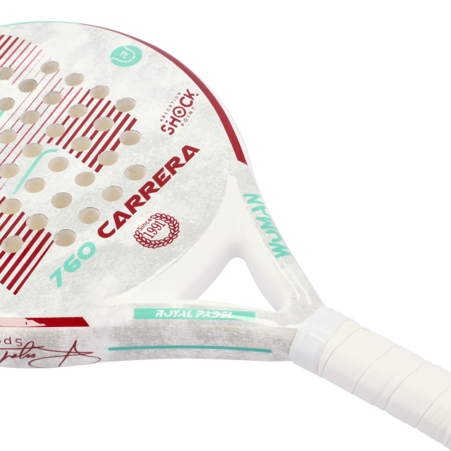 La pala Royal Pádel 760 Carrera Blanca 2024 es una pala hecha con materiales y prestaciones de gama alta. Perfecta para jugadoras que quieran una pala versátil de nivel avanzado con un buen control y potencia para dominar el punto. Esta pala se trata de la versión ligera de la Carrera 760 con un diseño distinto.